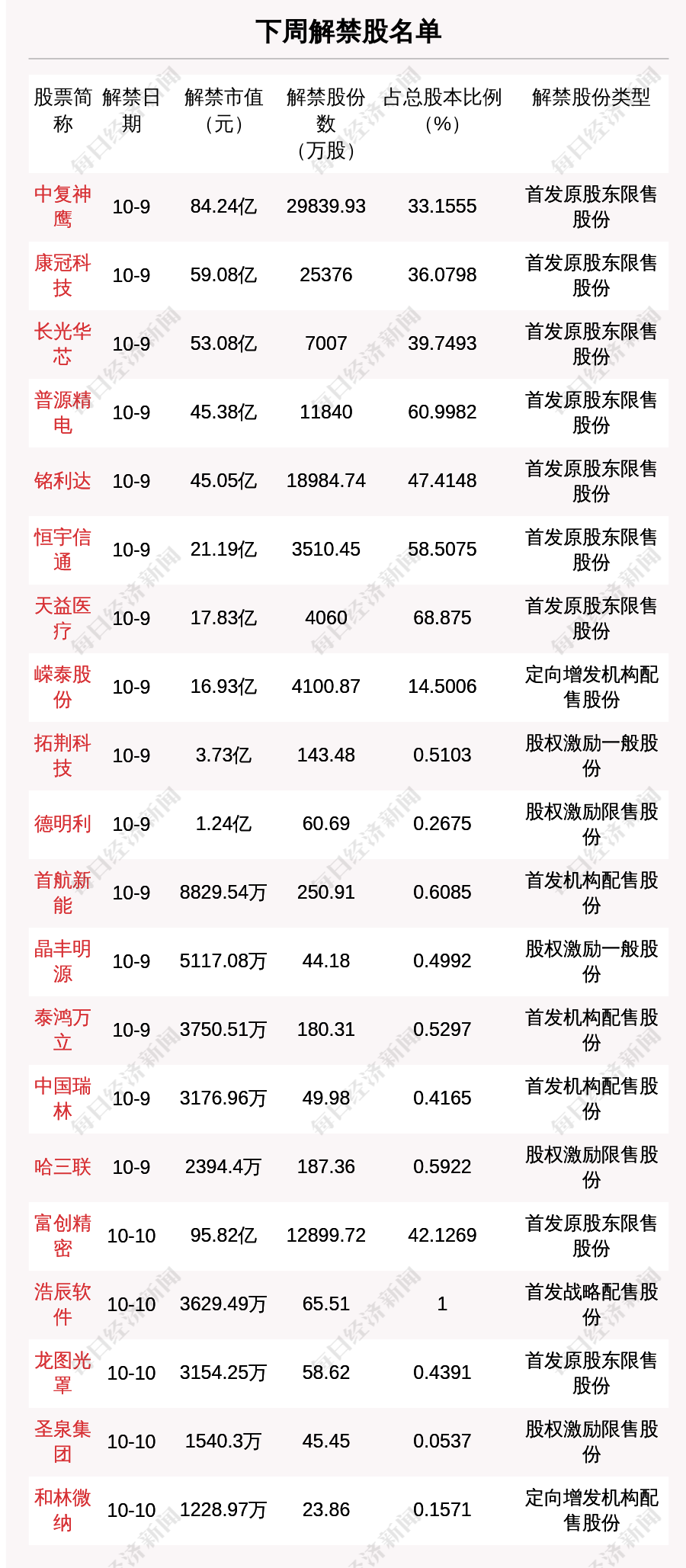 *文中所涉解禁市值為當(dāng)周最后一個交易日收盤價乘以下周解禁股份數(shù)