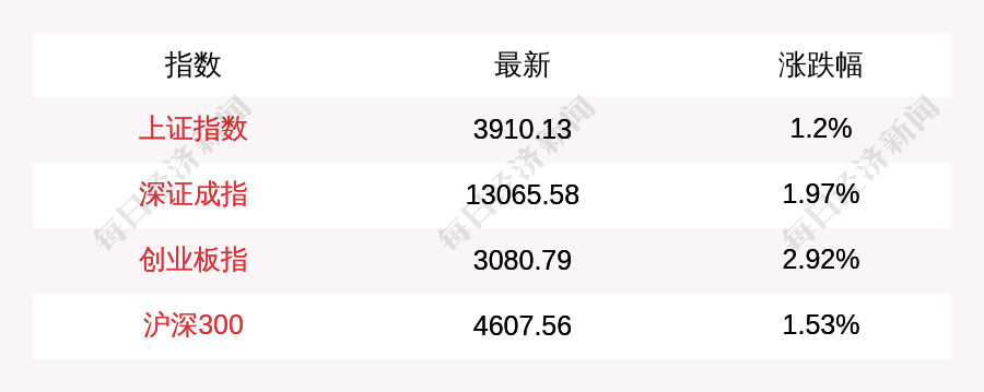 每經(jīng)AI快訊:北京時間10月21日11:30,上證指數(shù)早盤上漲46.24點,漲幅為1.2%,報收3910.13點,成交額5093.6億元;深證成指上漲252.37點,漲幅為1.97%,報收13065.58點,成交額6421.68億元;創(chuàng)業(yè)板指上漲87.34點,漲幅為2.92%,報收3080.79點,成交額2974.02億元;滬深300上漲69.34點,漲幅為1.53%,報收4607.56點,成交額3376.87億元。